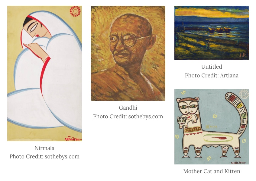 Jamini Roy believed ordinary people were more important than governments. During his lifetime, he never sold a painting for more than 350 rupees, approximately 4 dollars. He wanted people, regardless of income, to be able to own fine art. His paintings are now valued in the tens of thousands. Jamini Roy died in 1972 in Kolkata, India. He remains one of the most celebrated Indian artists of the 20th century.