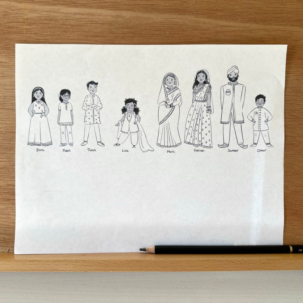 After finalizing the design for Lulu, I created the characters and world around her. In South Asian families there is often a lot of characters. So, making each one distinct with their own stories was a fun exercise. There is Zara the book lover, Farah the athlete, and Tarek with the rizz. Kamal, the main antagonist, was originally named Omar, but I decided to change his name in a later draft. My mother’s middle brother’s name is Kamal. Kamal uncle, “the black sheep”, is where I get my artistic genes. He never pursued art as a career, but is an incredible artist.